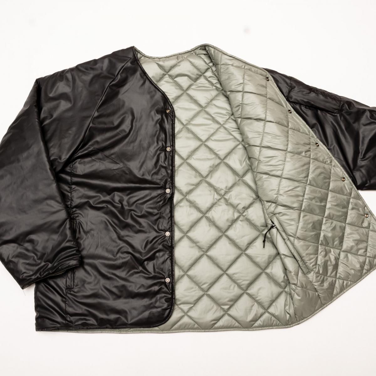 コーディネートや気分に合わせ、裏表自由にどちらでもお召いただける中綿入りリバーシブルジャケットです。中綿入りかつ防風性のある素材で暖かく、襟なし&スナップ仕様でイージーにお召いただけます。ひっくり返せばキルティング仕様かつ明るい色で、1つで2役のジャケットに仕上がりました。